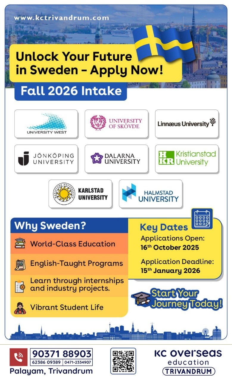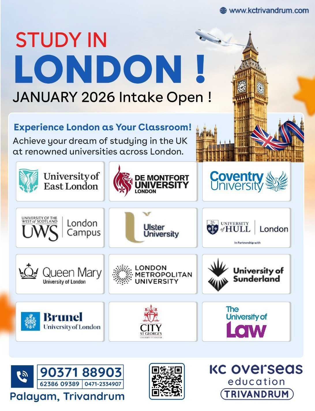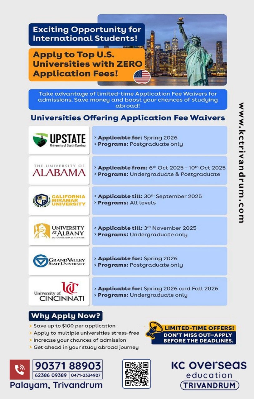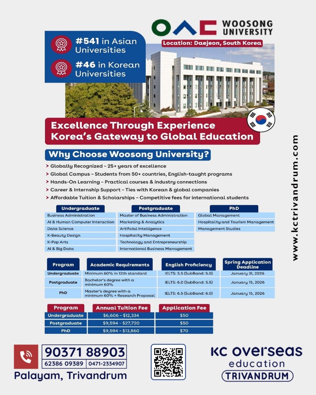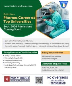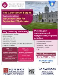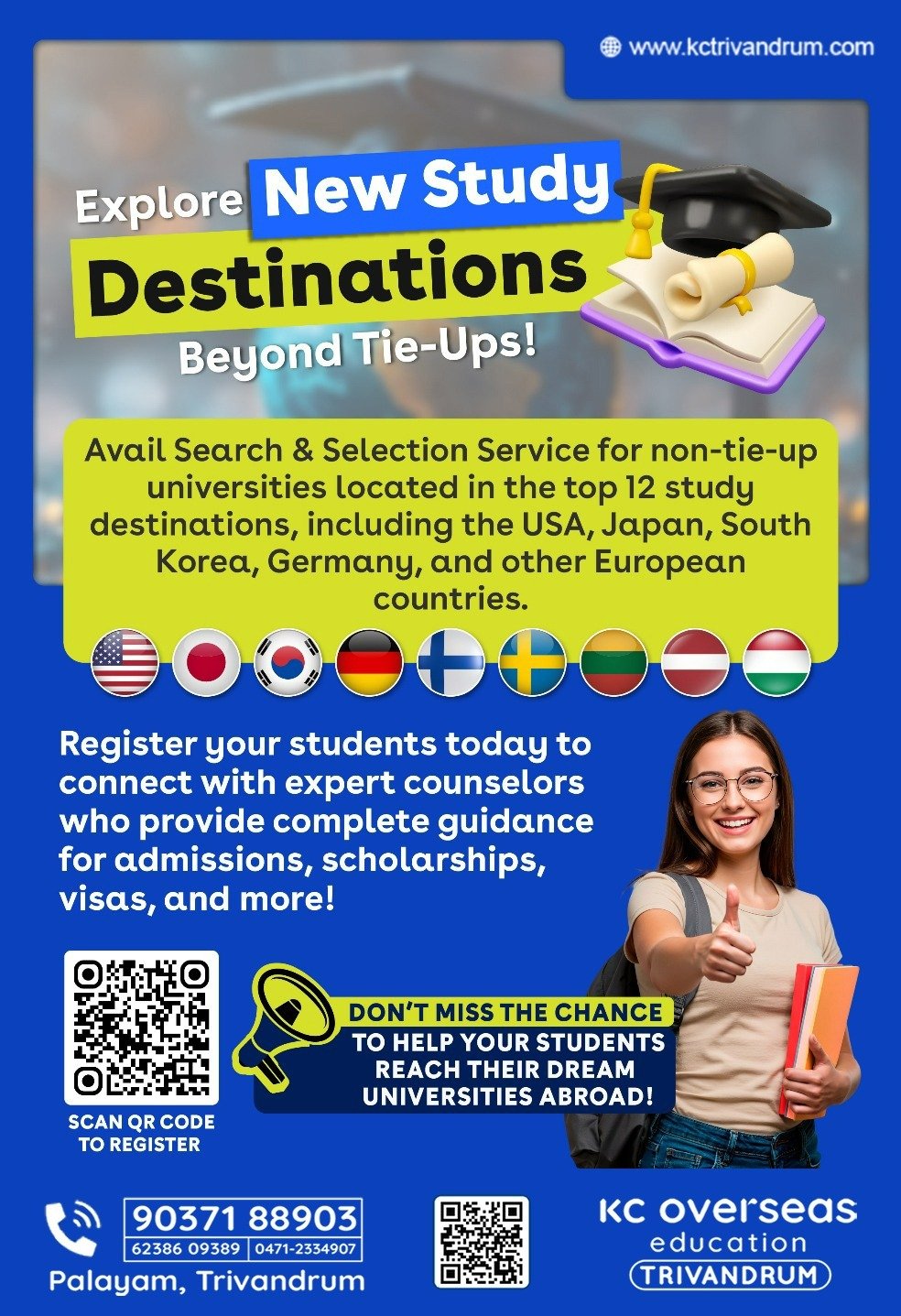 Study Abroad Consultancy in Trivandrum: Strive for greater achievements by selecting the perfect fit from a diverse range of over 950+ universities spanning 38 countries worldwide. The options and possibilities presented by our universities are boundless! KC Overseas Trivandrum – No.1 Study Abroad Consultancy in Trivandrum.