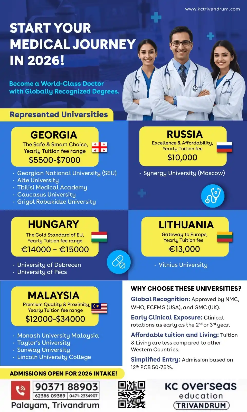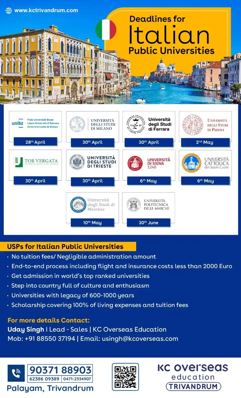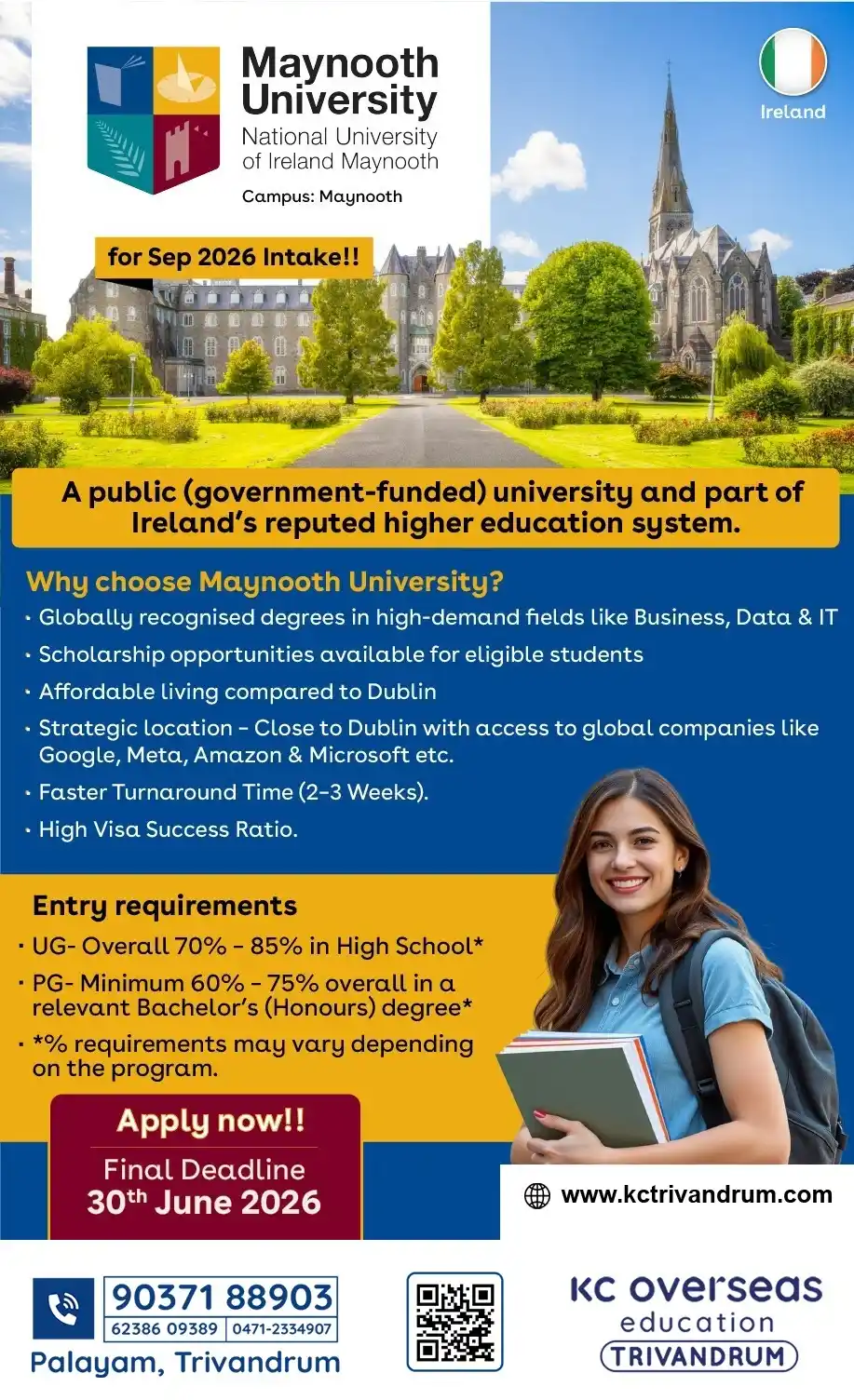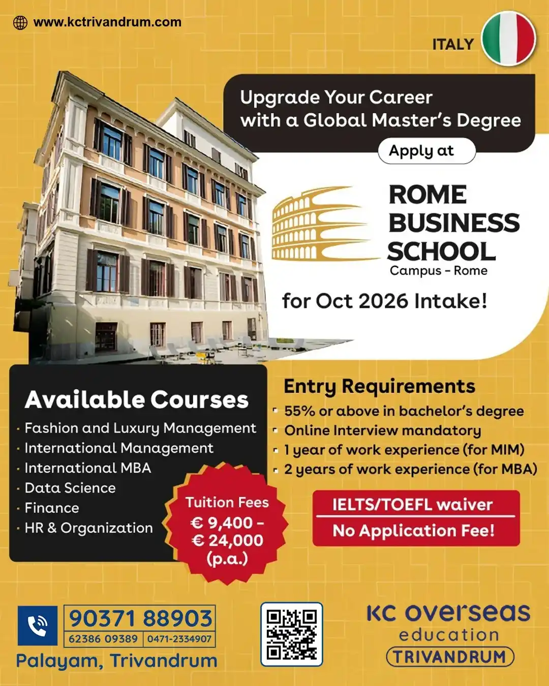 Study Abroad Consultancy in Trivandrum: Strive for greater achievements by selecting the perfect fit from a diverse range of over 1000+ universities spanning 42 countries worldwide. The options and possibilities presented by our universities are boundless! KC Overseas Trivandrum – No.1 Study Abroad Consultancy in Trivandrum.