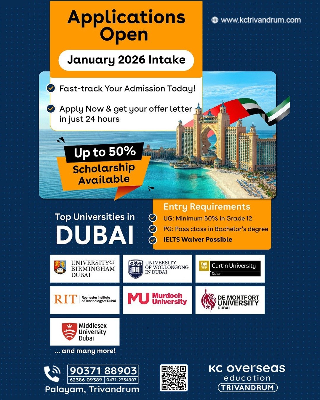 Study Abroad Consultancy in Trivandrum: Strive for greater achievements by selecting the perfect fit from a diverse range of over 950+ universities spanning 38 countries worldwide. The options and possibilities presented by our universities are boundless! KC Overseas Trivandrum – No.1 Study Abroad Consultancy in Trivandrum.